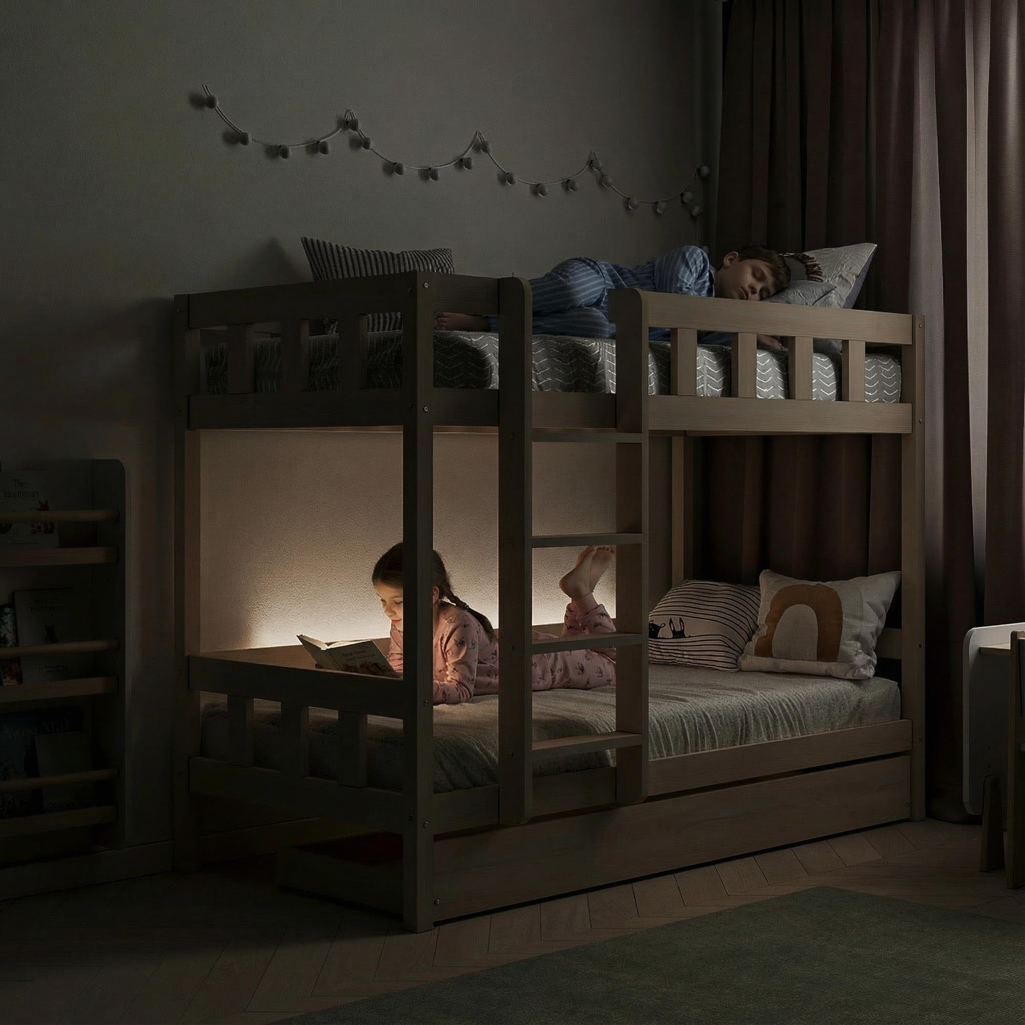 Die unkomplizierte Montage und das durchdachte Maßkonzept machen das Bett zur perfekten Wahl für ein gemeinsames Kinderzimmer oder als platzsparende Lösung bei wachsendem Familienbedarf.