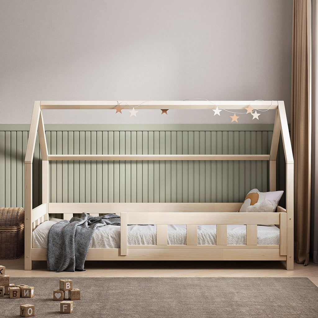 BusyKids Kinderbett-Haus KUKU-MAX mit Seitenwand und vorderem Sicherheitsgitter