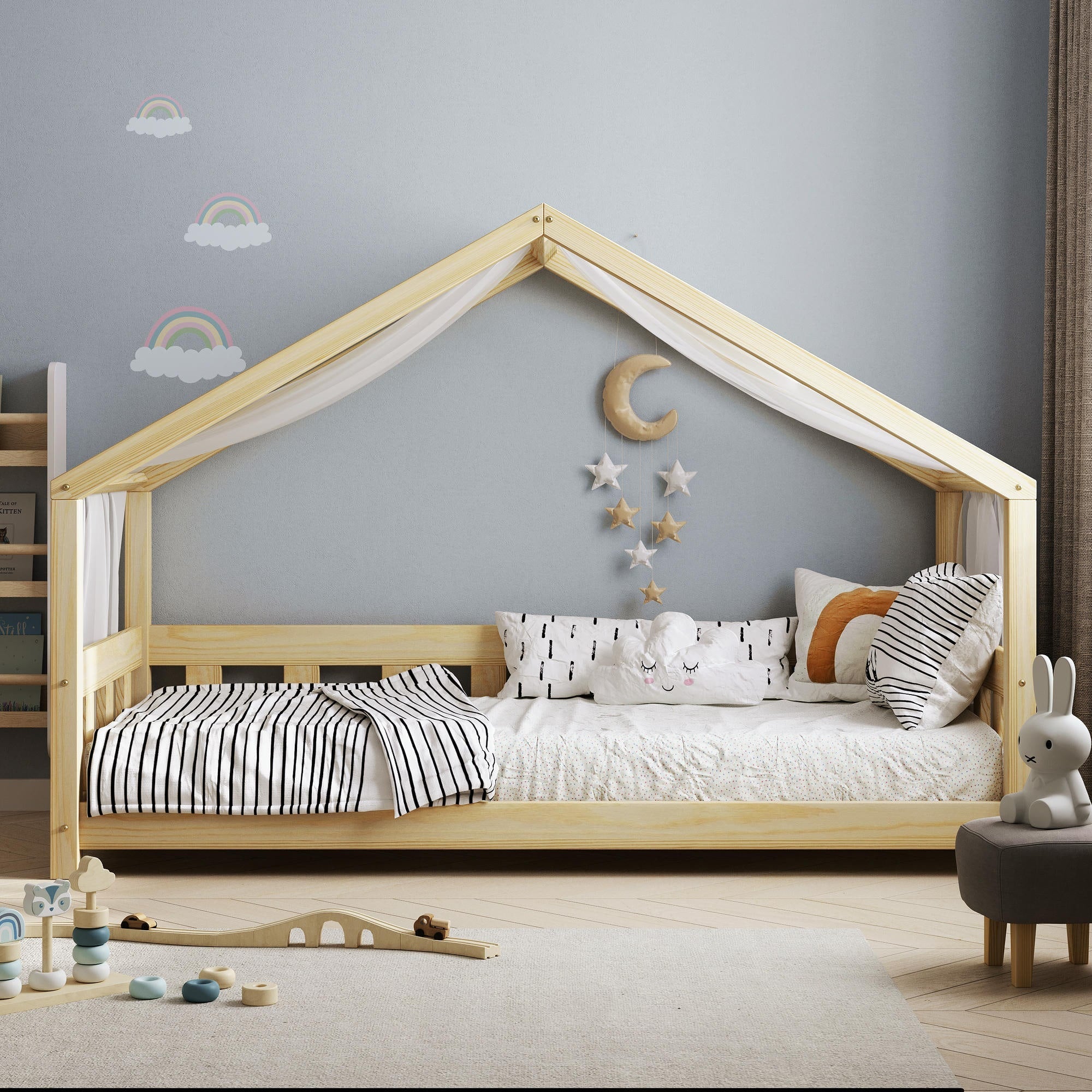 Die durchdachte Gestaltung mit Vorderwand und offenem Eingang schafft ein Gefühl von Sicherheit und Geborgenheit. Gleichzeitig ermöglicht der großzügige offene Eingang dem Kind freien Ein- und Ausstieg, fördert die Selbstständigkeit und sorgt für maximalen Komfort.
