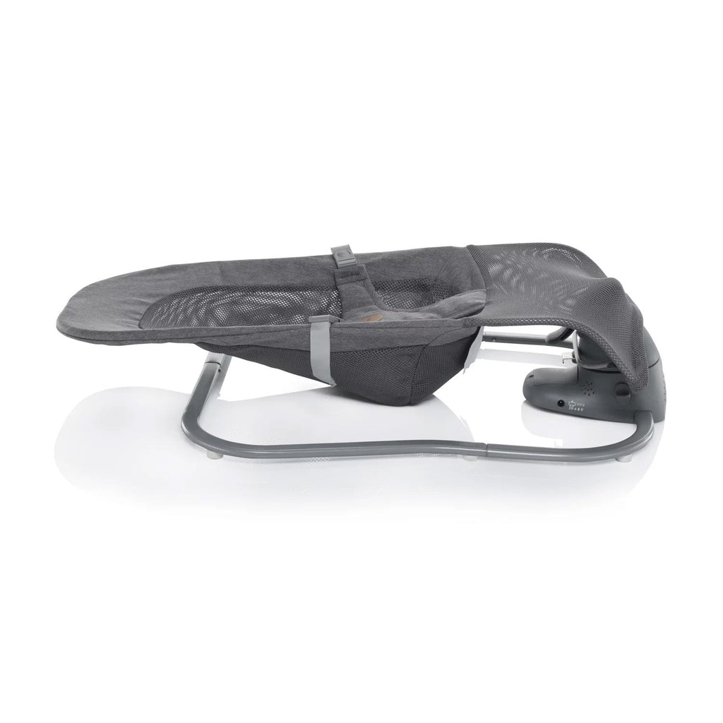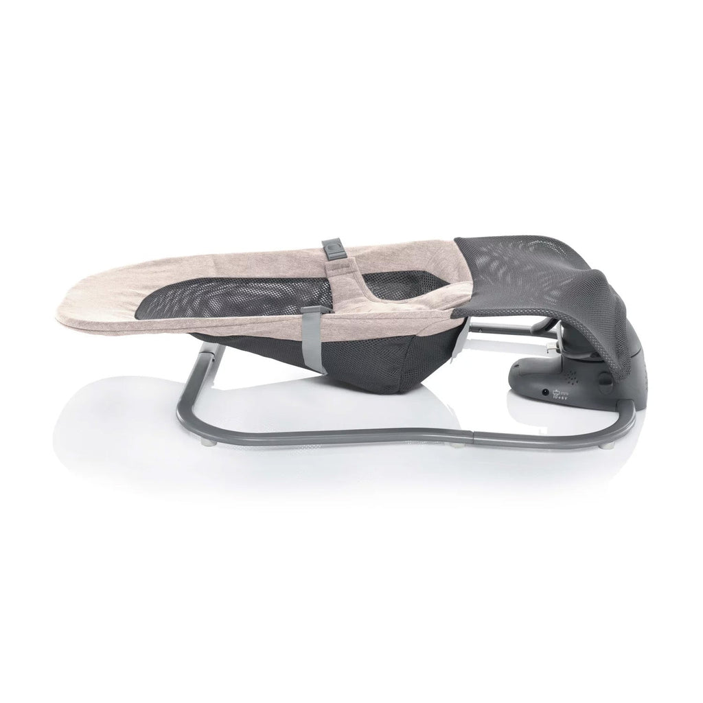 Das moderne Design der Moyo Wippe wird durch einen mittleren Bereich aus strapazierfähigem Mesh ergänzt, der eine optimale Luftzirkulation gewährleistet und die Temperatur des Kindes in den Sommermonaten reguliert. Die Rückenlehne lässt sich in 3 Positionen verstellen. Das Kind kann sich entweder durch eigene Bewegungen wiegen oder den Elektromotor mit 5 Intensitätsstufen nutzen. Ein integrierter Timer bietet Intervalle von 8, 15 und 30 Minuten. Beruhigende Naturgeräusche sorgen zusätzlich für Entspannung.