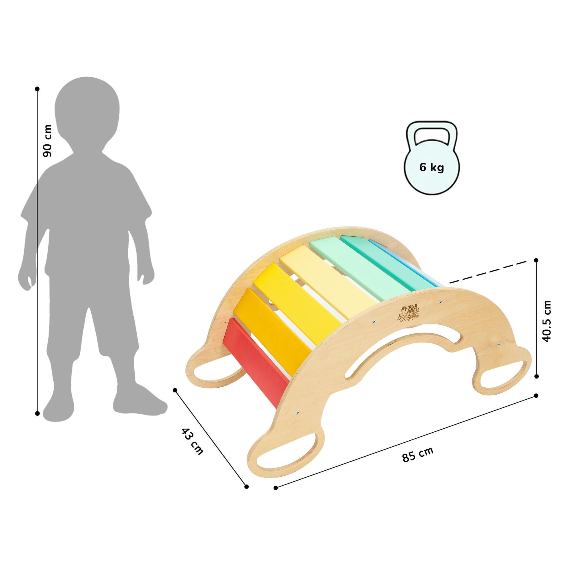 Wie können Sie Ihrem kleinen Rangen Bewegung gönnen, auch wenn Sie in einer kleinen Wohnung leben und scheußliches Wetter ist? Auch wir haben uns das oft gefragt, und so entstand die Mehrzweck-Holzschaukel. Das Innere besteht aus Platten in wunderschönen Regenbogenfarben, so dass auch an traurigen Wintertagen das Kinder- oder Wohnzimmer angenehm erstrahlt.