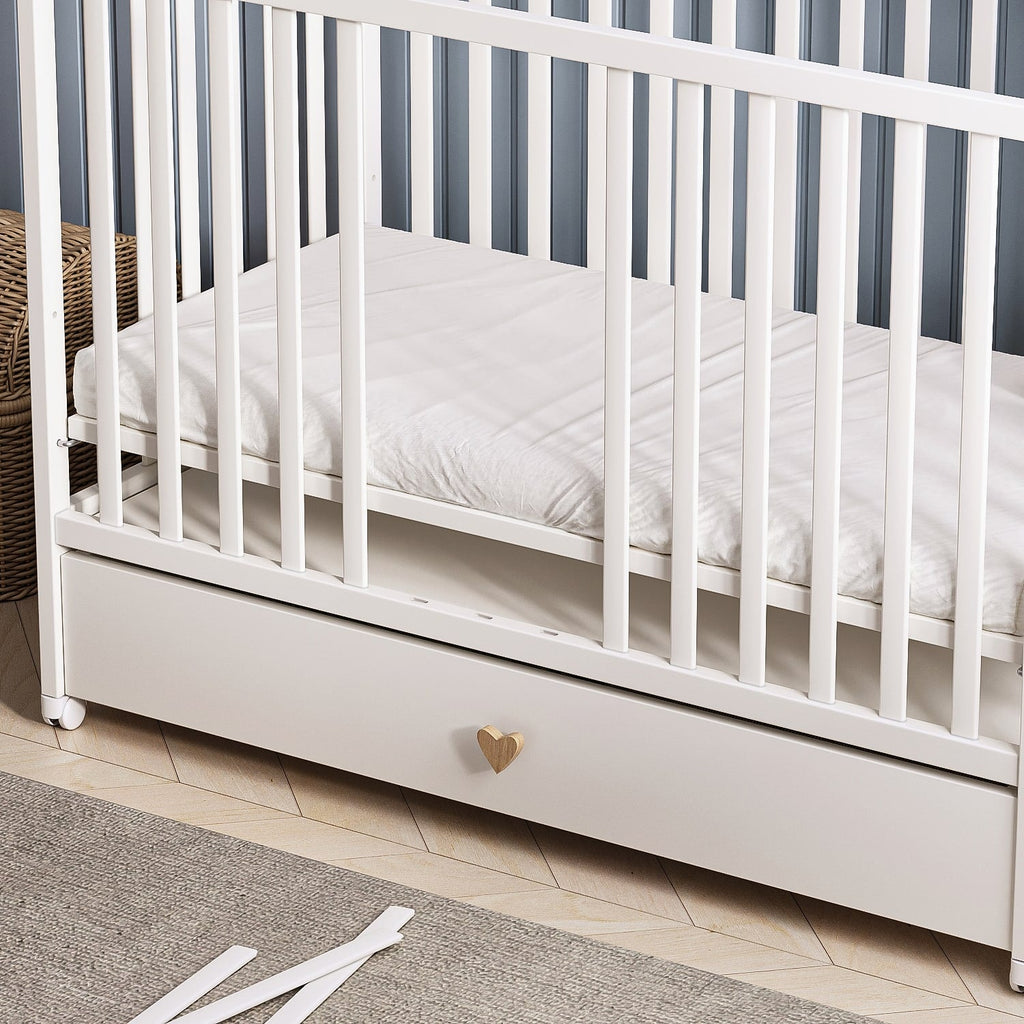 Altergerechte Funktionalität: Die Seitenwand verfügt über drei herausnehmbare Gitterstäbe, und die Matratzenposition ist höhenverstellbar – so passt sich das Bett flexibel den Bedürfnissen Ihres Kindes an.