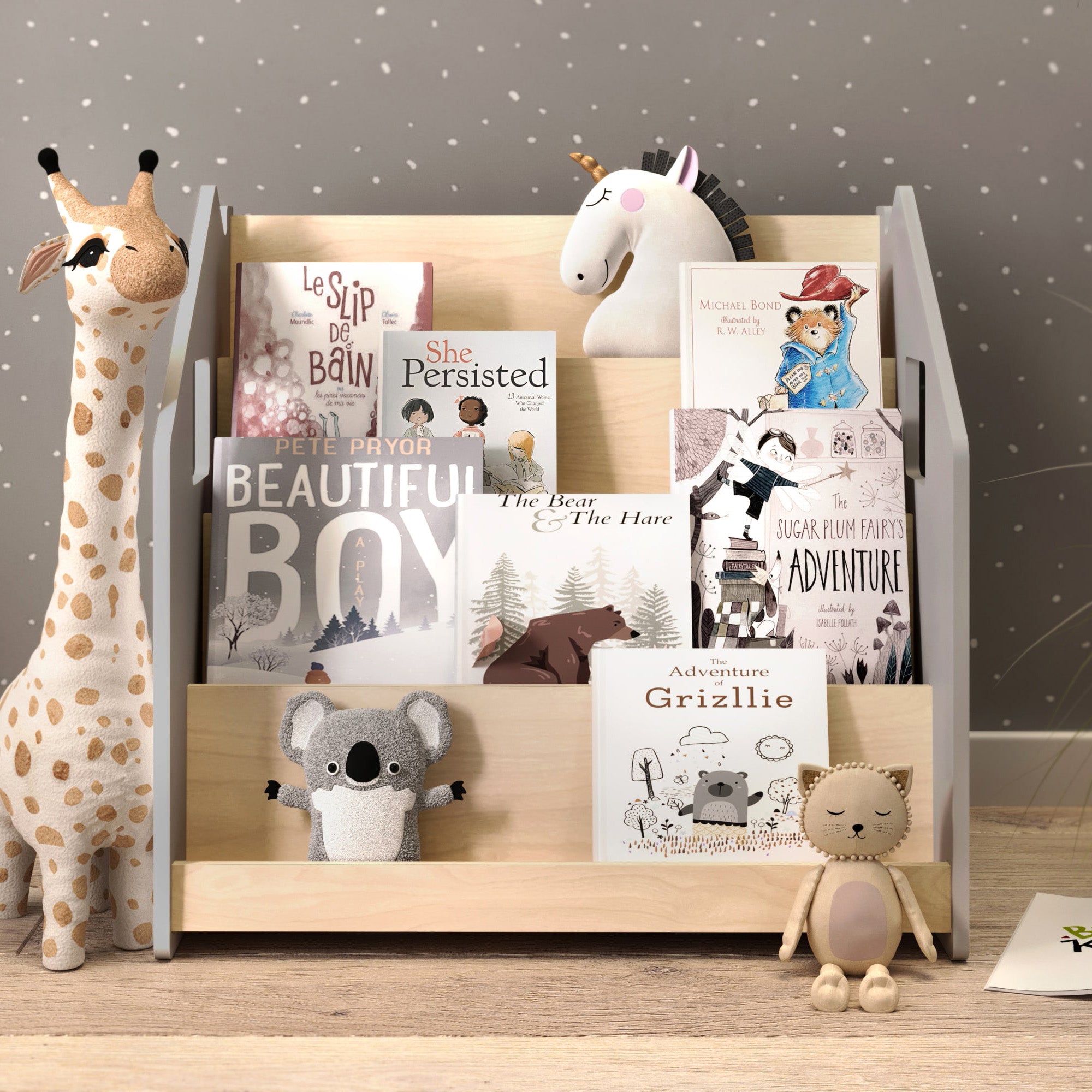 Bücherregal nach Montessori - Weiß und Grau