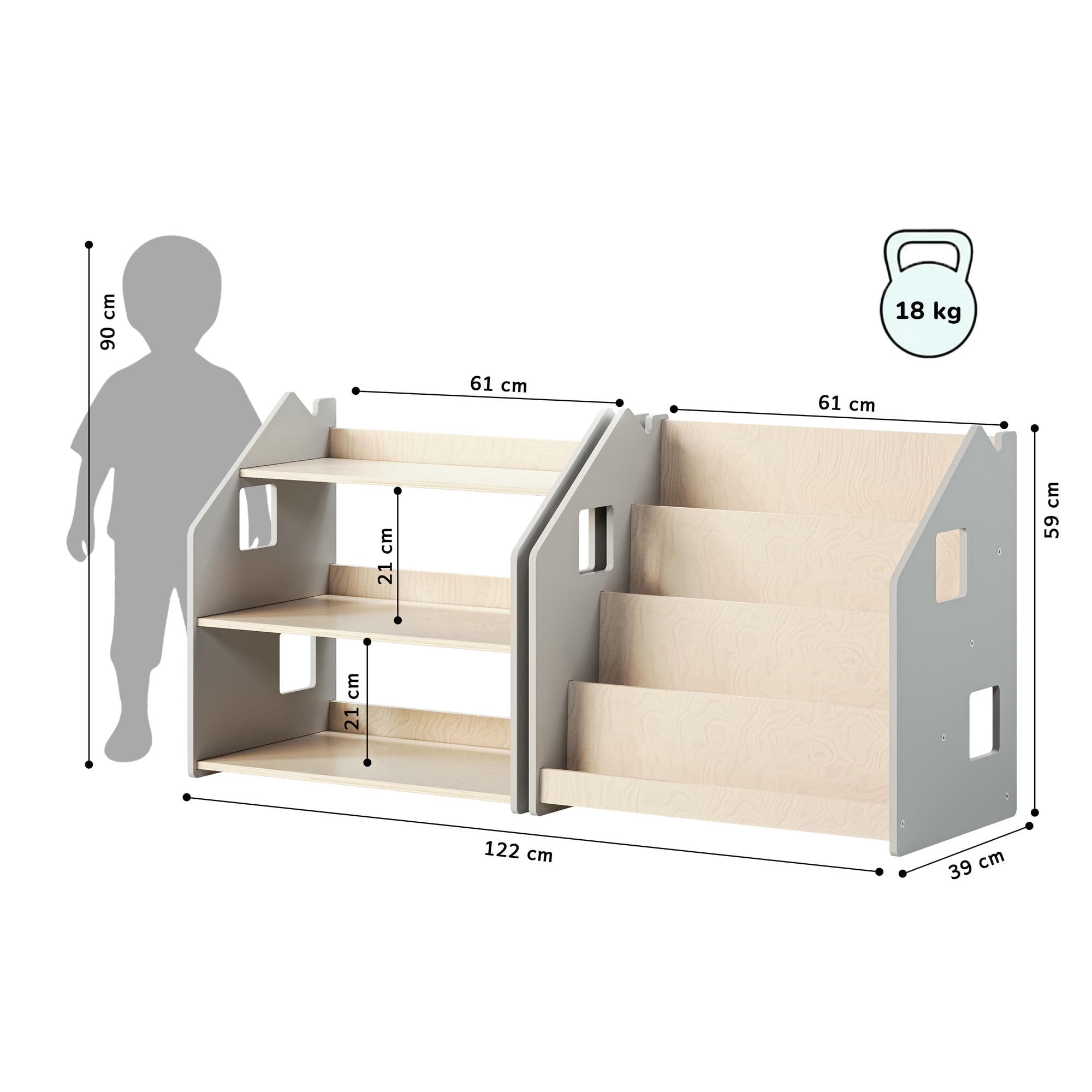 Bücherregal & Spielzeugregal Set BusyKids - Weiß und Grau