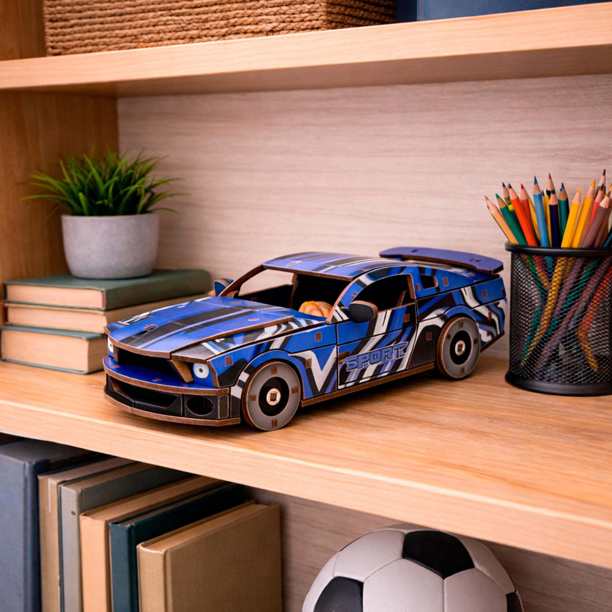 Der BusyKids Holz-3D-Bausatz „Sportlicher Muscle Car“ verbindet kreativen Spielspaß mit sinnvoller Förderung und sorgt für viele begeisternde Momente.