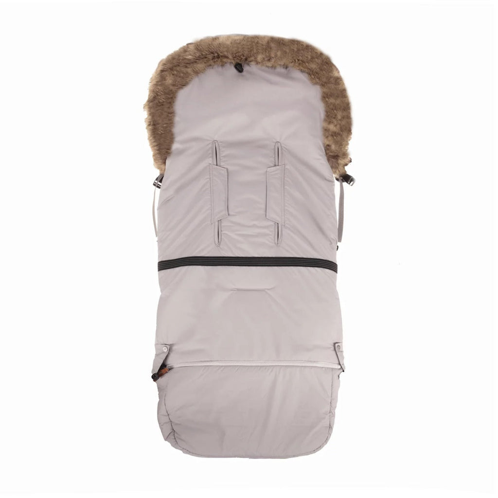 Der stylische Fußsack eignet sich sowohl für den Kinderwagenaufsatz als auch für Sportwagen. Das wind- und wasserabweisende Obermaterial sowie die extra warme Einlage mit abnehmbarem Fellrand bieten zuverlässigen Schutz vor Kälte, Regen und starkem Wind.
