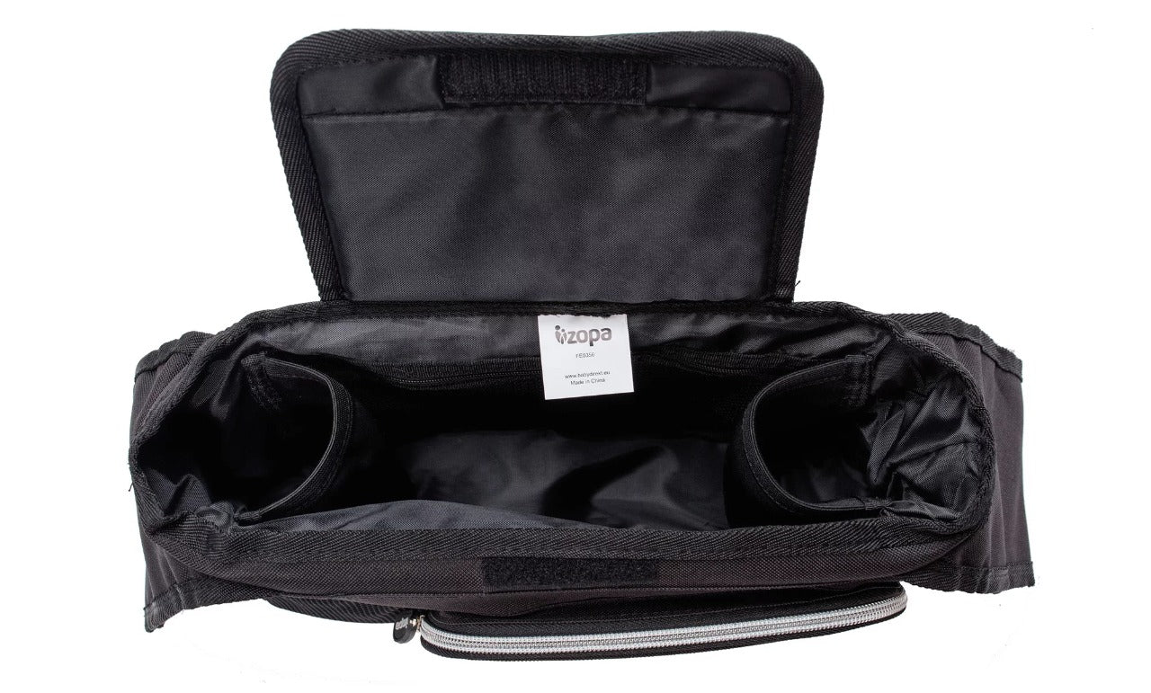 Der Organizer aus hochwertigem, robustem Nylon bietet ausreichend Platz für alle wichtigen Utensilien Ihres Kindes. Das große Hauptfach ist ideal für diverse Kleinigkeiten, während an der Vorderseite eine kleinere Reißverschlusstasche und eine Netztasche für das Handy zusätzlichen Stauraum bieten. Seitlich sorgen praktische Flaschenöffnungen für schnellen Zugriff auf Getränke. Die Befestigung am Kinderwagen gelingt einfach und sicher dank Haken und Klettverschlüssen.