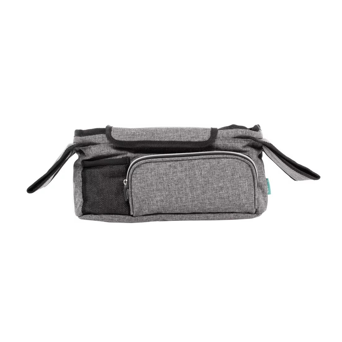 Atmungsaktives Nylon, universell passend für alle Kinderwagentypen, praktische Flaschenöffnungen und Reißverschlusstasche – das ist der Kinderwagen-Organizer Deluxe.