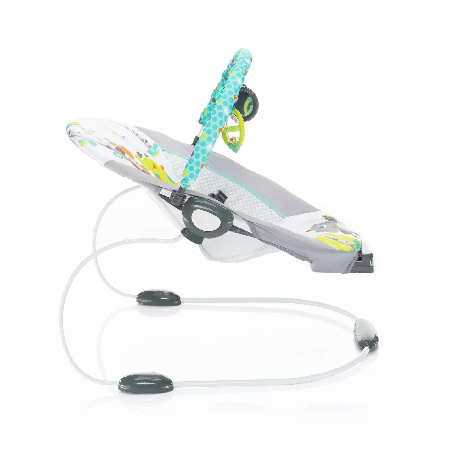Die Wippe bietet ideale Entspannung für Momente, in denen das Baby beruhigt oder beschäftigt werden soll. Sie verfügt über 5 Melodien und eine sanfte Vibrationsfunktion. Die abwischbare Spielstange mit 3 Spielzeugen stimuliert die Sinne und fördert die Feinmotorik. Durch eigene Bewegungen kann das Kind sanft mitwippen.